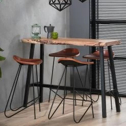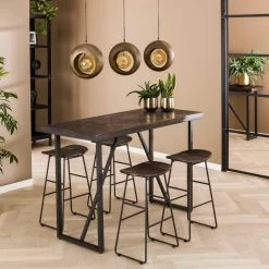Poldimar Barset Mesin 120×60 Met 4 Barkrukken – Bruin/zwart