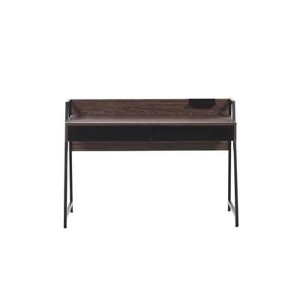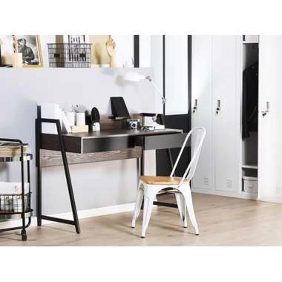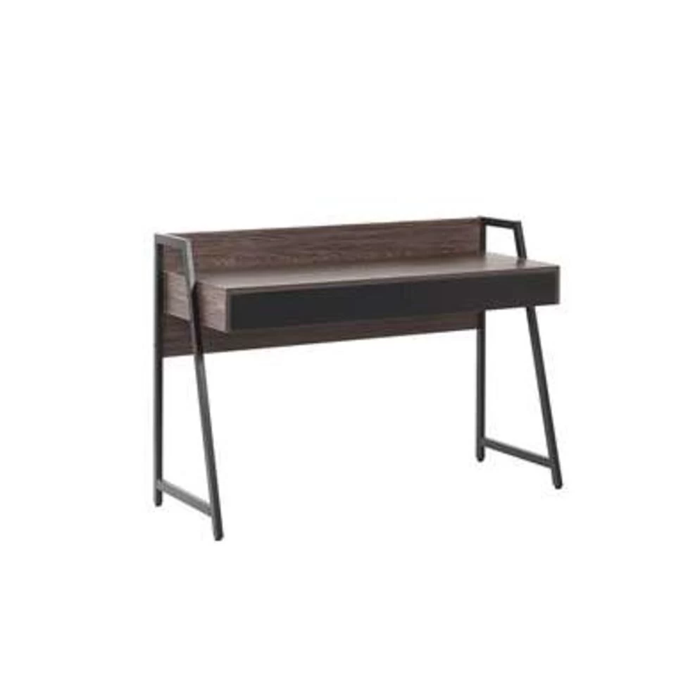Stijlvol bureau in donkerbruin. Terug naar de basis, maar zonder verlies van stijl – dat is dit bureau! Het aantrekkelijke gepoedercoate frame en het paneel aan de achterkant maken het ontwerp compleet. De twee even grote, gemakkelijk uittrekbare lades bieden voldoende ruimte voor al je bureaubenodigdheden en documenten.