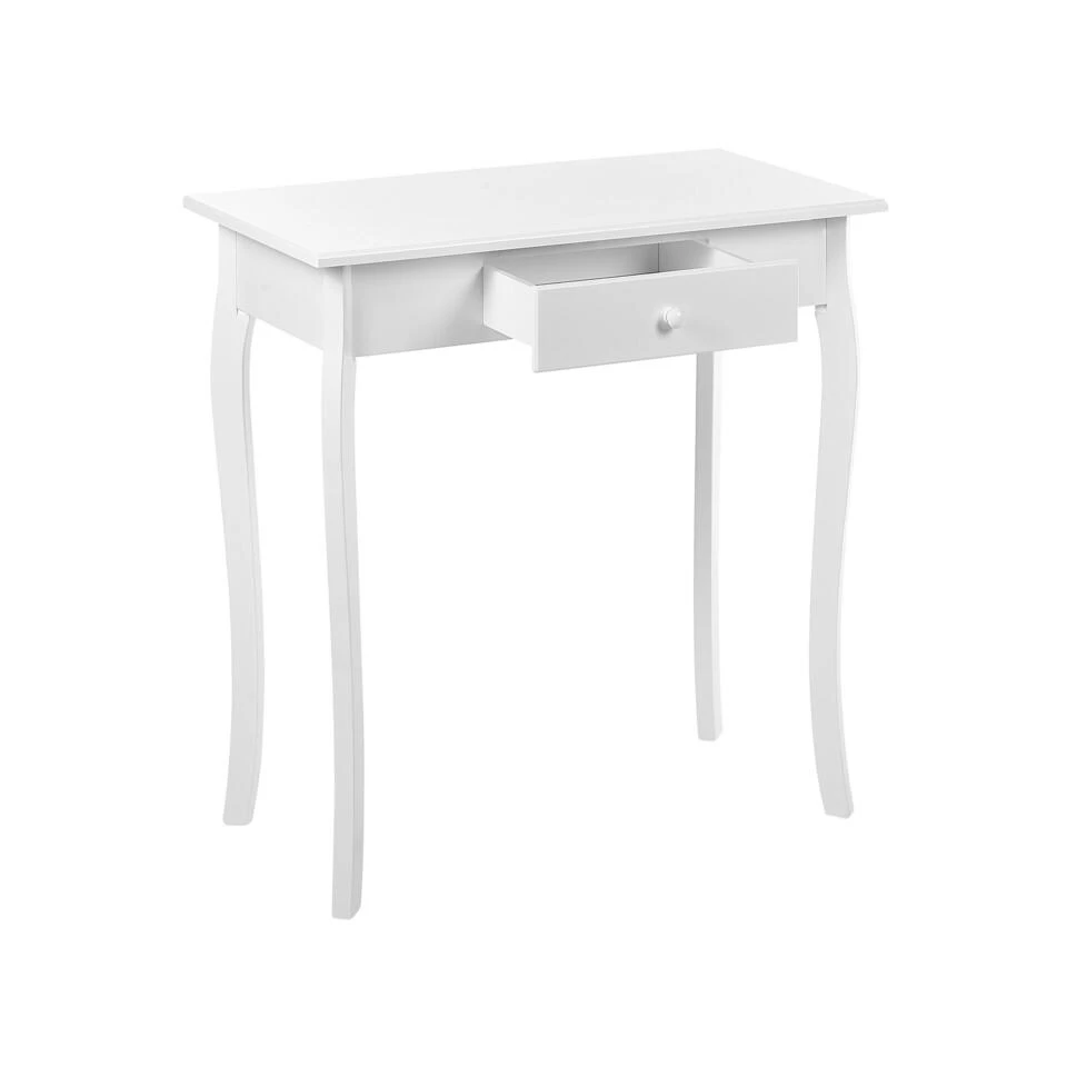 Tafel met lade geïnspireerd door Franse stijl. Deze elegante consoletafel zal perfect passen in een woonkamer of hal en zal een vleugje Provençaalse stijl in je interieur brengen. Hij is uitgerust met een lade die uitstekende opbergruimte biedt voor al je spullen. De gebogen poten van Queen Anne grenenhout benadrukken het ontwerp van de consoletafel en zorgen voor stabiliteit.