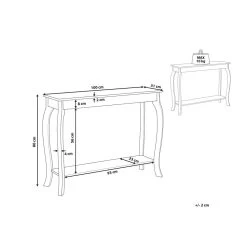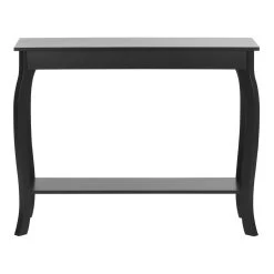 Elegante, eenvoudige console tafel in zwart. . Stijlvol en praktisch – een mooi detail dat de entree van je woning transformeert in iets speciaals. De wandtafel kan ook worden gebruikt als plaats voor parfums, make-up of andere kleine items in de bad- of slaapkamer. De extra onderste plank biedt voldoende ruimte om een gericht, visueel accent in de kamer te plaatsen met diverse decoratieve items.