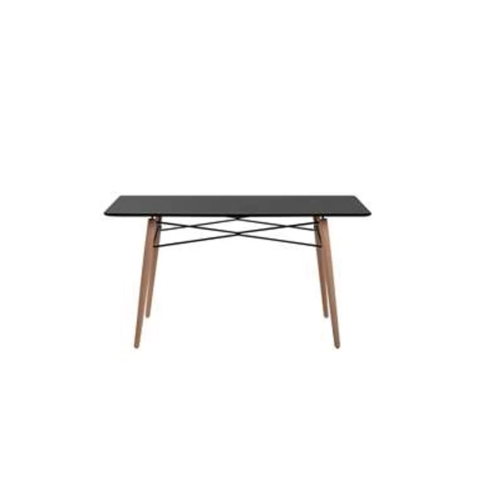 Stijlvolle, praktische eettafel met zwart tafelblad. Deze eettafel is een praktische aanwinst voor je huis. Voeg een modern karakter toe aan je eetkamer en breng een elegante charme in je interieur. Het meubilair is een uitnodiging tot gezellige bijeenkomsten met familie of gasten.