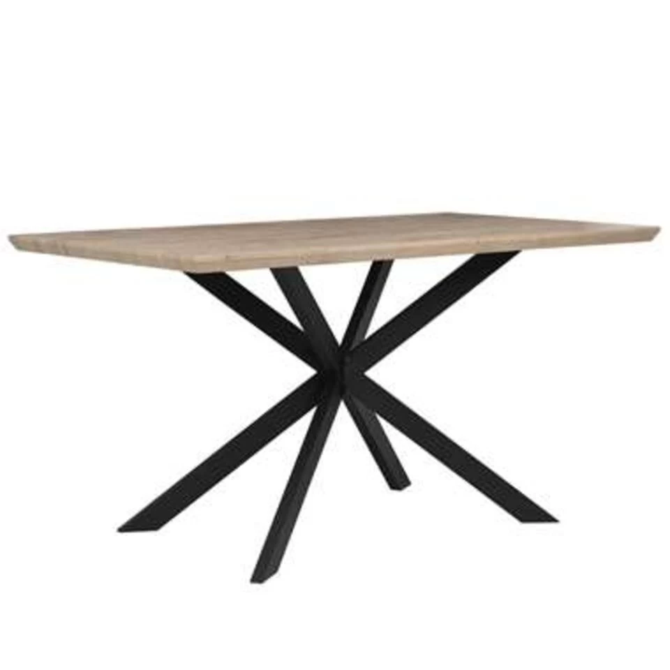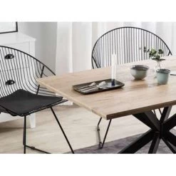 Unieke eetkamer tafel met licht houtkleurig blad en industrieel onderstel. Voeg een decoratief tintje toe aan je eethoek met deze industrieel geïnspireerde tafel. Het meubel is gemaakt van MDF in warme tinten en past perfect bij elk modern of rustiek interieur. Bovendien biedt het meubel plaats aan maximaal 6 personen, dus ideaal voor zowel een familiediner als een vriendenbijeenkomst.