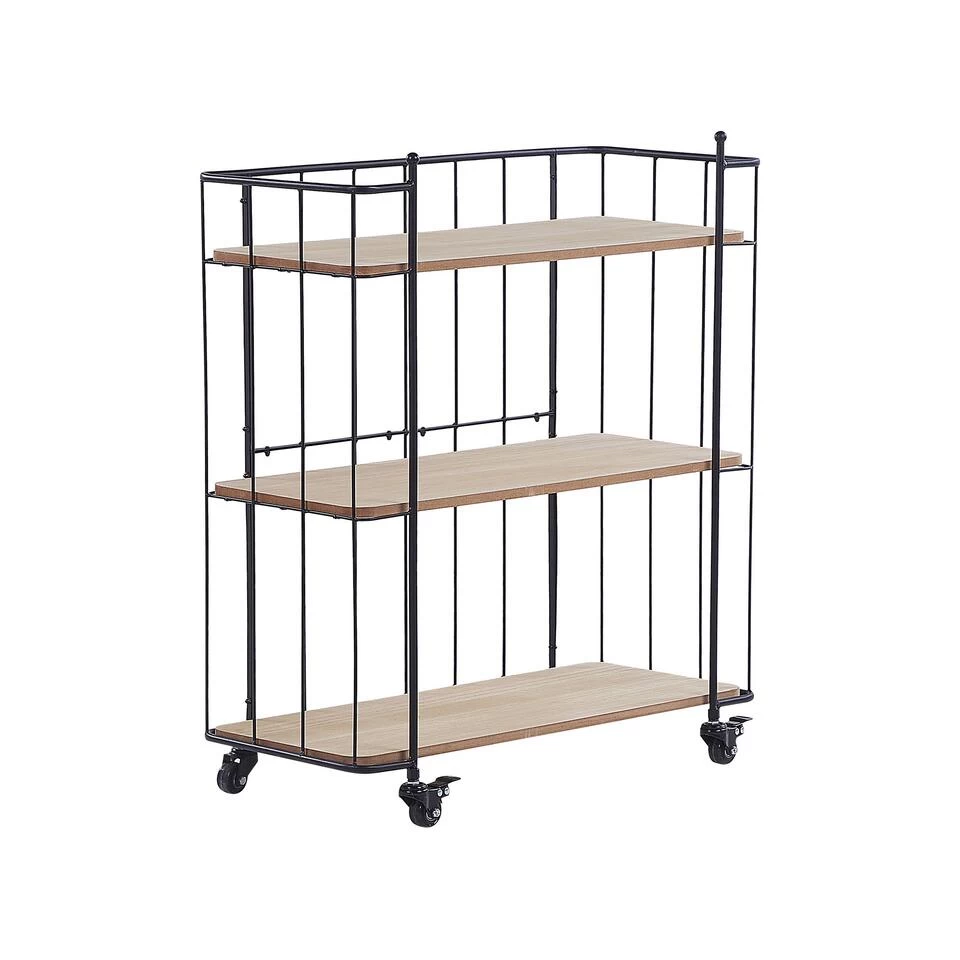 3 laags keukentrolley. Haal het beste uit je interieur en kies voor multifunctionele oplossingen. Deze keukentrolley met 3 planken biedt voldoende ruimte voor alle spulletjes. De metalen, duurzame constructie in compositie met houten elementen kan een mooie toevoeging zijn aan een woonkamer, slaapkamer of zelfs badkamer geïnspireerd op industriële of moderne stijl. Dankzij de ingebouwde wielen kun je het meubel moeiteloos verplaatsen.