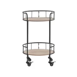 2-laagse keukenwagen. Werk je interieur bij met multifunctionele meubelen die hun plek kunnen vinden in een keuken, woonkamer of badkamer. Deze op industriële vormen geïnspireerde serveerwagen biedt voldoende ruimte voor gereedschap, gebruiksvoorwerpen of wat prullaria. De stevige metalen constructie is gebaseerd op de wielen met ingebouwde pauzes, zodat je het stuk gemakkelijk kunt verplaatsen.