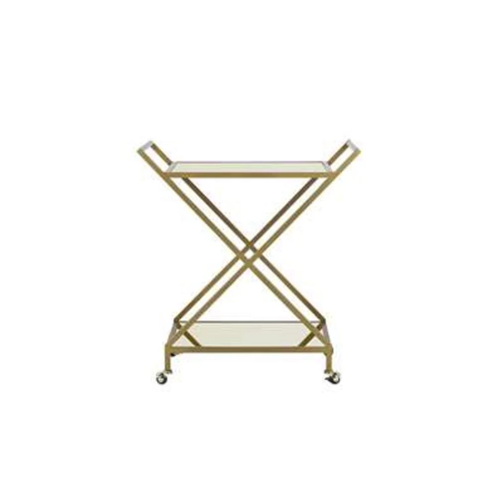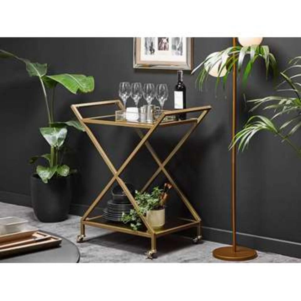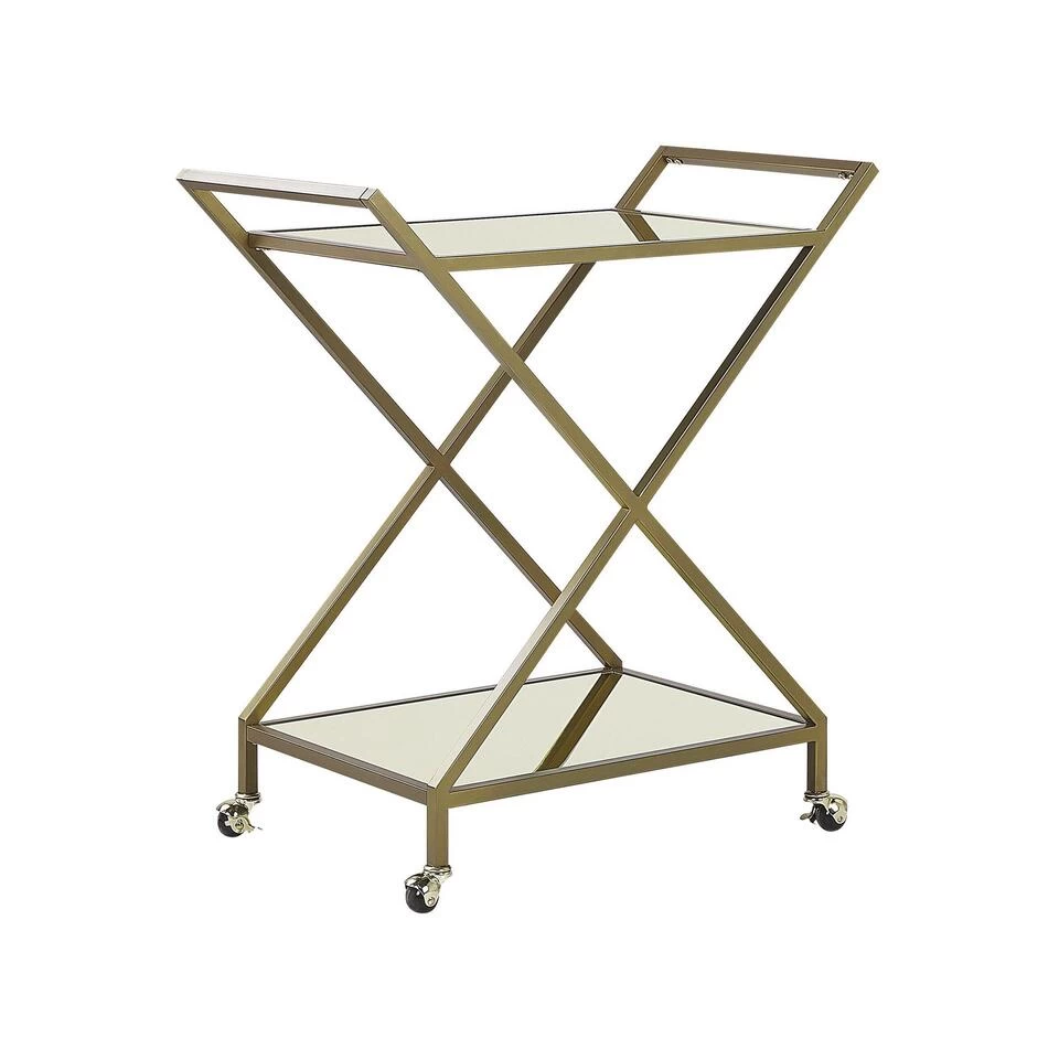 Keukentrolley met wielen. Met deze chique metalen keukentrolley kun jij je gasten vermaken met jouw bartending skills. De keuken trolley heeft een handgreep aan elke kant en zwenkwielen. De vergrendelingsfunctie van de trolley wielen zorgen ervoor dat hij soepel wegrijdt en op zijn plek blijft als hij wordt geblokkeerd. De keukentrolley is een strakke toevoeging aan elke leefruimte en niet alleen als cocktailkar. Geef je gang extra stijl door hem als plantenstandaard te gebruiken of plaats de trolley naast het bed en match het met een glamoureuze tafellamp. Deze keukentrolley ziet er overal perfect uit.
