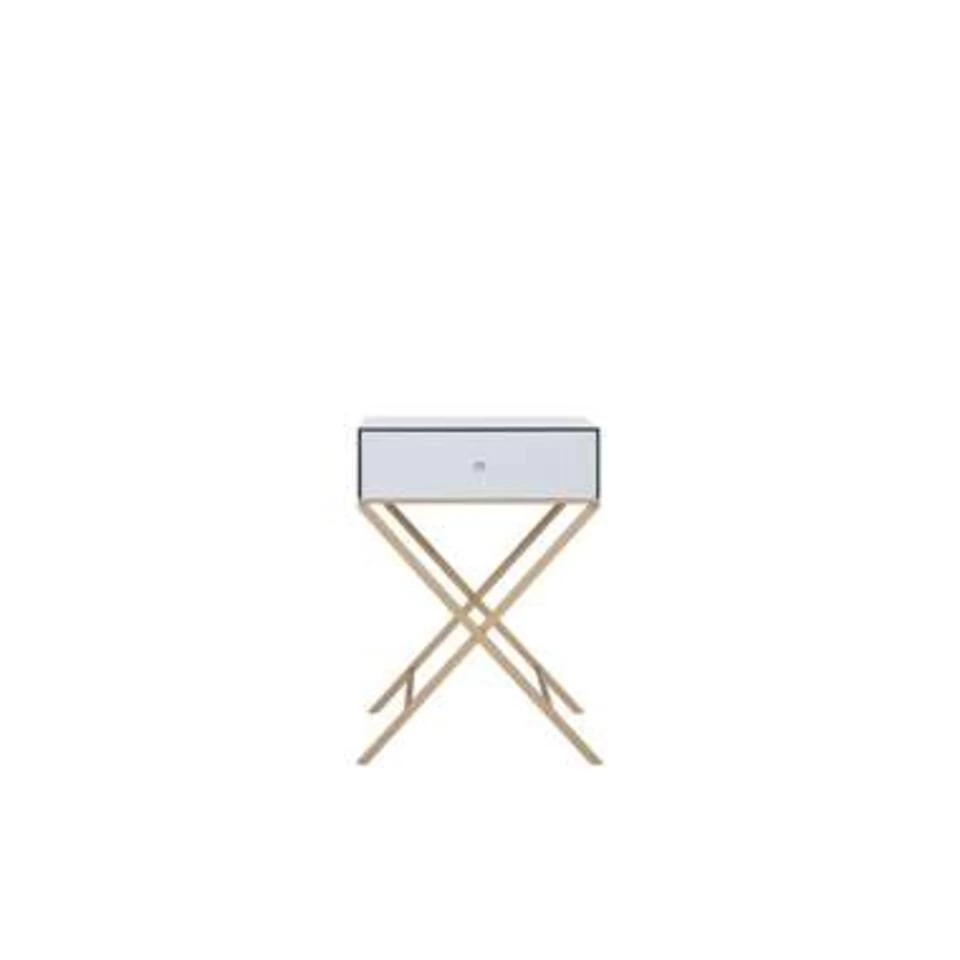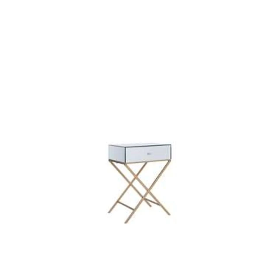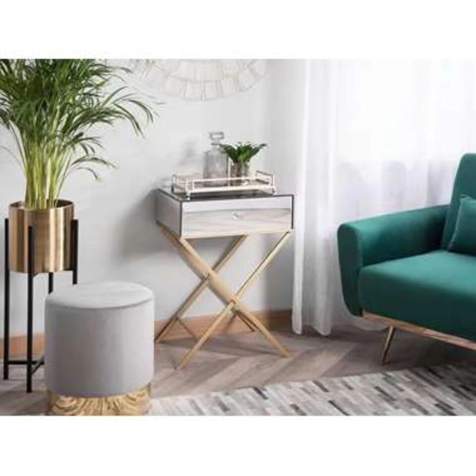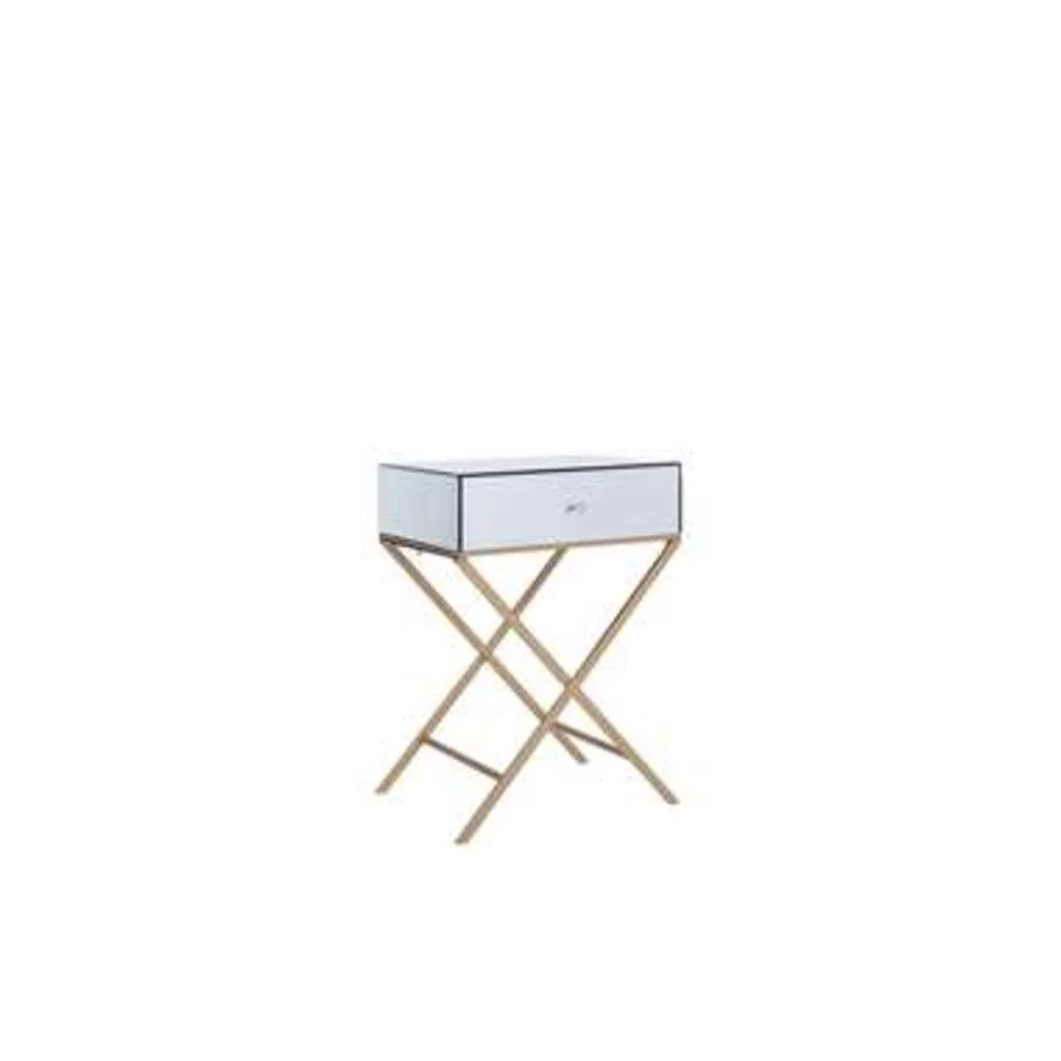 Praktische bijzettafel in modern design. Het gladde, reflecterende oppervlak van dit meubelstuk zorgt voor een extreem glamoureuze look die elk interieur verrijkt. Bovendien heeft de bijzettafel een praktische lade waarin je een breed scala aan woonaccessoires en kleinigheden kunt verbergen.