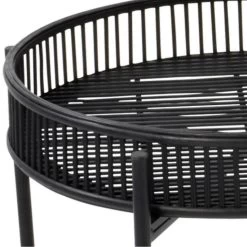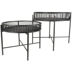 Bent u op zoek naar een eenvoudige manier om meer sfeer in uw interieur te creรซren? Dan is bijzettafelset Aiko uit de collectie van het woonmerk Les een perfecte keuze! Deze trendy set bestaat uit twee tafeltjes met verschillende afmetingen, welke op een speelse manier bij elkaar geplaatst kunnen worden. Beide exemplaren zijn uitgerust met een subtiel metalen onderstel met een zwarte kleur als afwerking. Op elk onderstel rust een rond tafelblad met een opstaande rand, welke is uitgevoerd in zwart bamboe. Plaats bijzettafel Aiko in de woonkamer of hal, maar gebruik hem ook om de tuinkamer of ruimte onder de veranda een nieuwe look te geven. Tevens verkrijgbaar in het naturel. Afmetingen B49xD49xH39.50 cm. B60xD60xH49 cm.