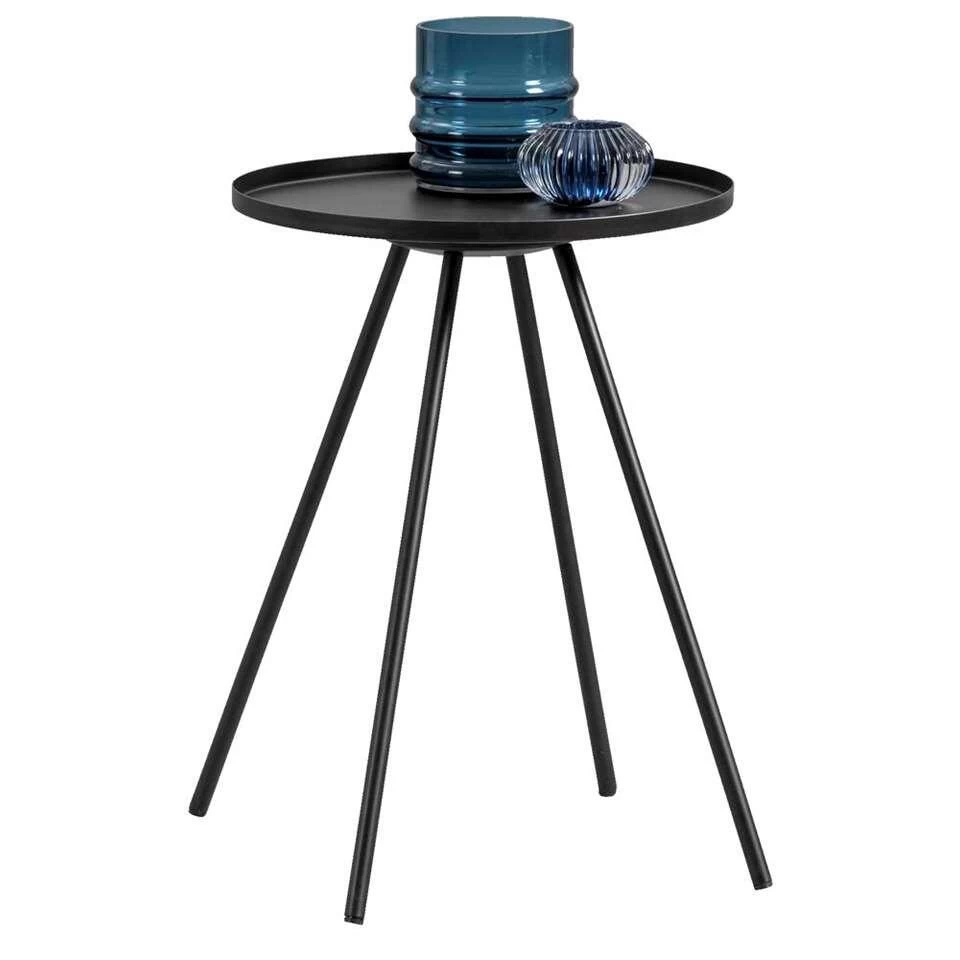 Bijzettafel Leicester is een moderne bijzettafel in de kleur matzwart. De bijzettafel is gemaakt van metaal en past goed in vele verschillende woonstijlen.