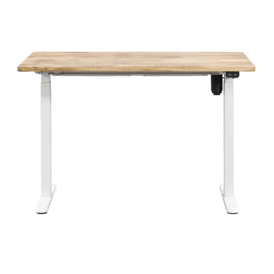 Bureau Homeworx is een eigentijds en modern zit/sta bureau. Het bureaublad is gemaakt van naturel hout en het onderstel is van wit metaal. Door de zit/sta functionaliteit creëer je zo een ergonomische werkplek die past bij jouw interieur. Het paneel om het bureau in hoogte te verstellen is zowel links als rechts te plaatsen.