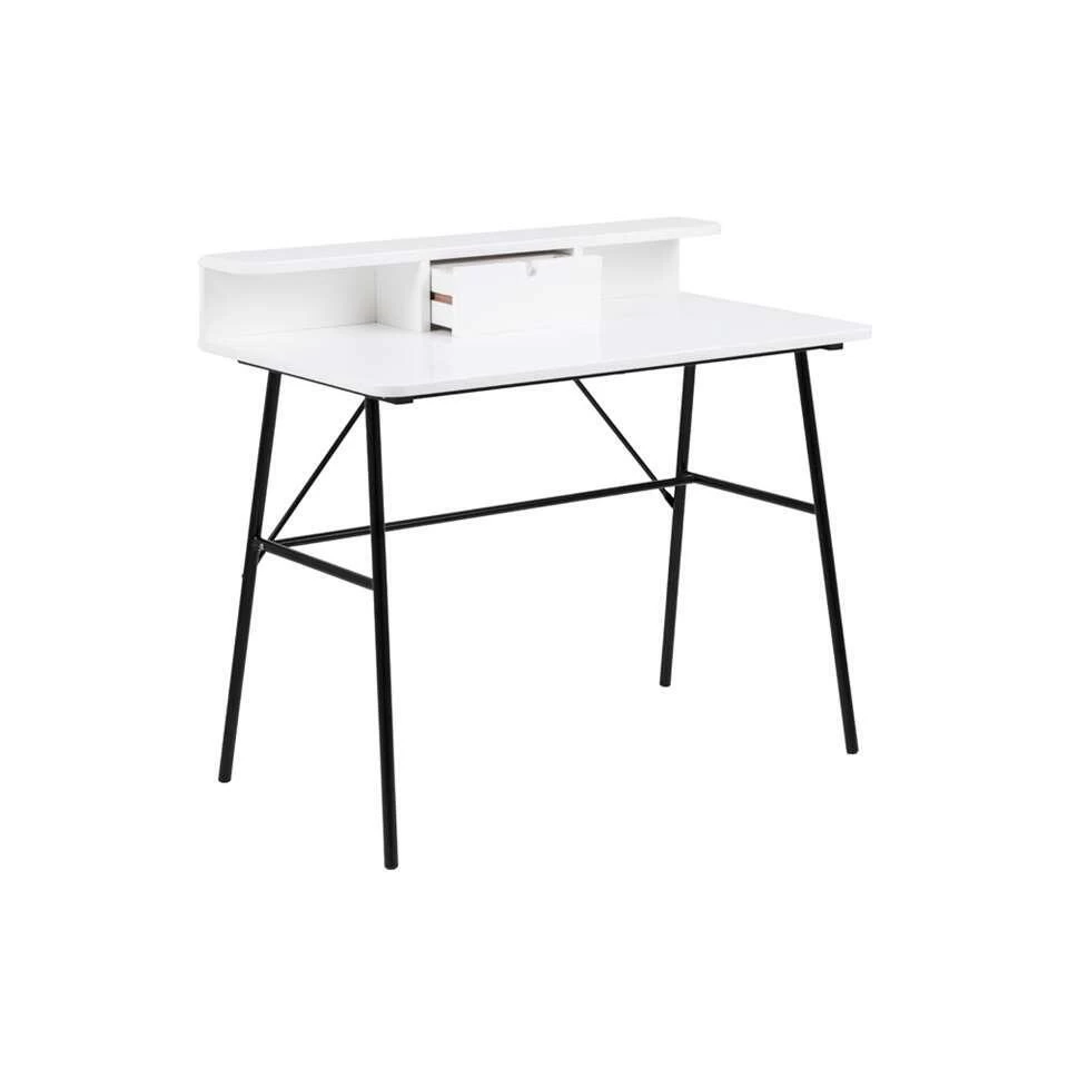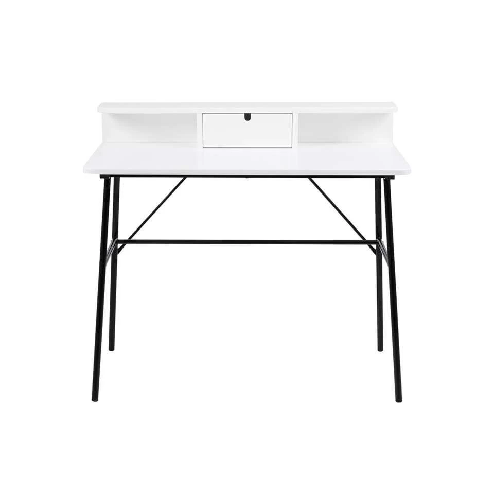 Bureau Molde is een modern bureau met een neutraal wit tafelblad en stevig zwart onderstel. Dit bureau straalt Scandinavisch design uit; eenvoudig maar enorm veel mogelijkheden. Het bureau is ideaal voor kinderen om huiswerk aan te maken, een student of voor jezelf als je een paar uurtjes thuiswerkt. Het blad van bureau Molde is gemaakt van hout en biedt genoeg ruimte voor je belangrijkste werkspullen. De minimalistische zwarte poten zijn slank maar door de constructie extra stevig. Het bureau heeft een fijne afmeting. Zet het bureau op een mooi plekje in de studeer-, werk- of kinderkamer.