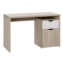 Bureau Tempo in eikenkleur is praktisch én stijlvol. Het bureau is voorzien van een kastje met een lade in wit en een ruim opbergvak. Daarom is dit bureau uitstekend geschikt voor schoolgaande kinderen, of voor op de studeerkamer. Huiswerk maken of thuiswerken: het kan allemaal!