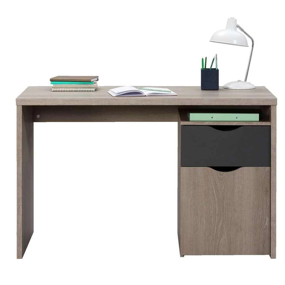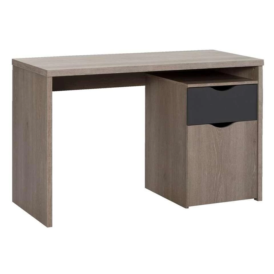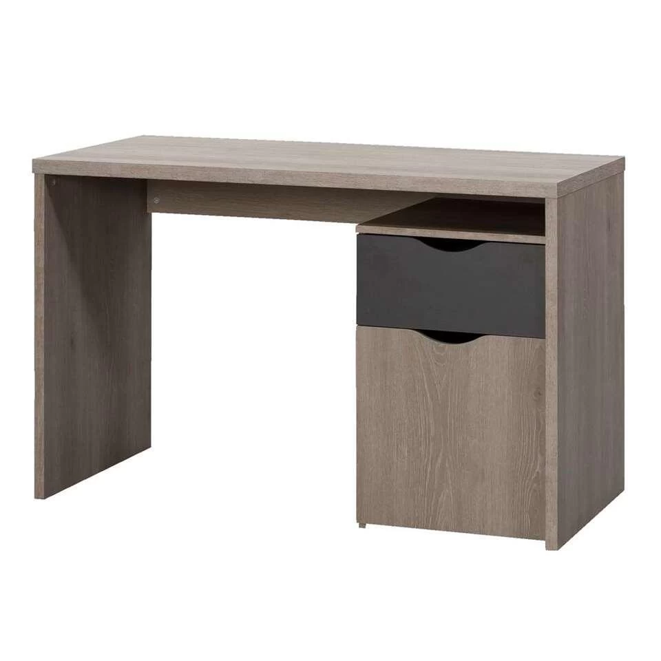 Bureau Tempo in grijs eikenkleur is praktisch én stijlvol. Het bureau is voorzien van een kastje met een lade in antraciet en een ruim opbergvak. Daarom is dit bureau uitstekend geschikt voor schoolgaande kinderen, of voor op de studeerkamer. Huiswerk maken of thuiswerken: het kan allemaal!