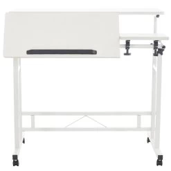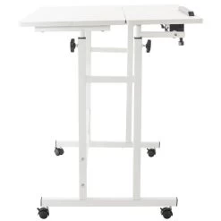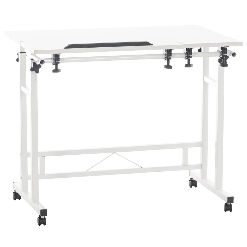 Hoogwaardige materialen maken dit functionele bureau, in combinatie met zijn heldere vorm, tot een echte blikvanger. Bureau Telford tovert een heerlijke ambiance in de werkruimte. De hoogte van de werkbladen kan afzonderlijk worden ingesteld. Bovendien kunnen de twee frontoppervlakken tot 90° worden gekanteld en in deze stand worden vergrendeld. De tafelbladen zijn gemaakt van MDF en rusten stabiel en stevig op een frame van gelakte stalen buizen. Dankzij de 4 zwenkwielen, elk met rem, is hij mobiel en stabiel tegelijk.