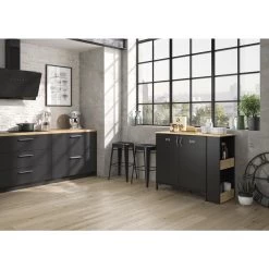 De draaibare bar tafel met 2 deuren MANCHESTER is een kwaliteitsmeubel gemaakt in Frankrijk. Het draaibare tafelblad biedt twee open opbergzones, perfect voor het opbergen van flessen of andere dagelijkse voorwerpen. De grote gesloten opbergruimte is verdeeld in vier zones met in hoogte verstelbare planken voor een gepersonaliseerde organisatie. De twee metalen labeldeuren voegen een industriële touch toe aan het geheel, terwijl de zwarte en eiken bi-tone een uitgesproken stijl geeft.