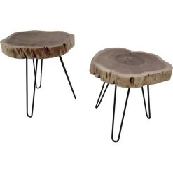 Deze set van twee Dylan bijzettafels is stoer, industrieel en multifunctioneel. De bijzettafels hebben verschillende maten wat zorgt voor een speels effect. Het blad is gemaakt van hout en het onderstel van zwart ijzer. Deze combinatie zorgt voor een industriële uitstraling. De afmetingen zijn: 47x40x50cm en 39x34x45cm. Het maximale draaggewicht is 10kg (klein) 15kg (groot). Plaats de tafeltjes bij elkaar als salontafel of apart van elkaar als bijzettafels. De tafels zijn licht waardoor ze makkelijk te verplaatsen zijn. Deze Dylan bijzettafelset is afkomstig van het woonmerk Les.