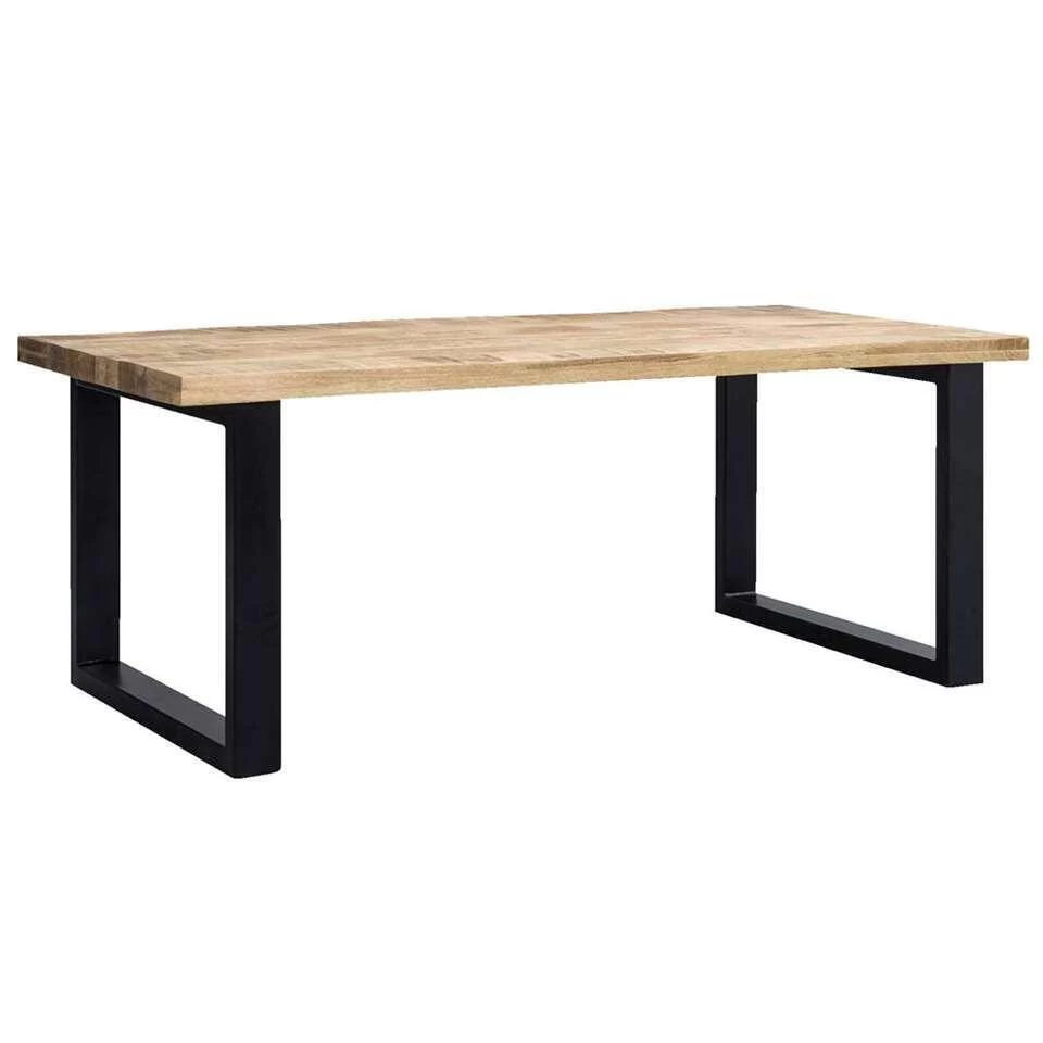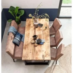 De eetkamertafel heeft een mangohouten tafelblad, sterk en met een stijlvolle en trendy look. Het onderstel is stevig en gemaakt van metaal in de vorm van een U. Hout met metaal is al enige tijd een stoere en populaire combinatie! Het tafelblad heeft een afmeting van 260×100 cm en is voorzien van een natuurlijke lak. De tafel heeft een hoogte van 78 cm. De hoogte tot de onderkant van het blad is 72 cm. Let dus op met het kopen van een bijpassende eetkamerstoelen met leuningen.