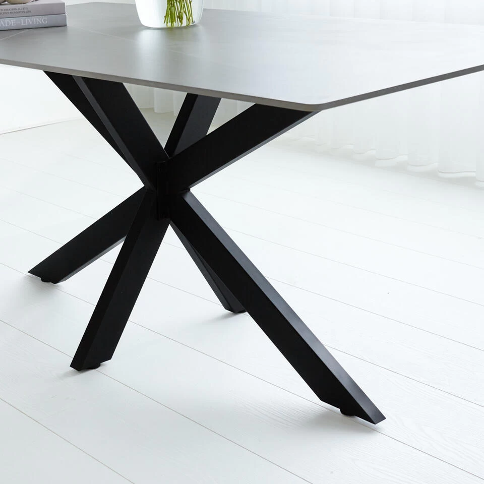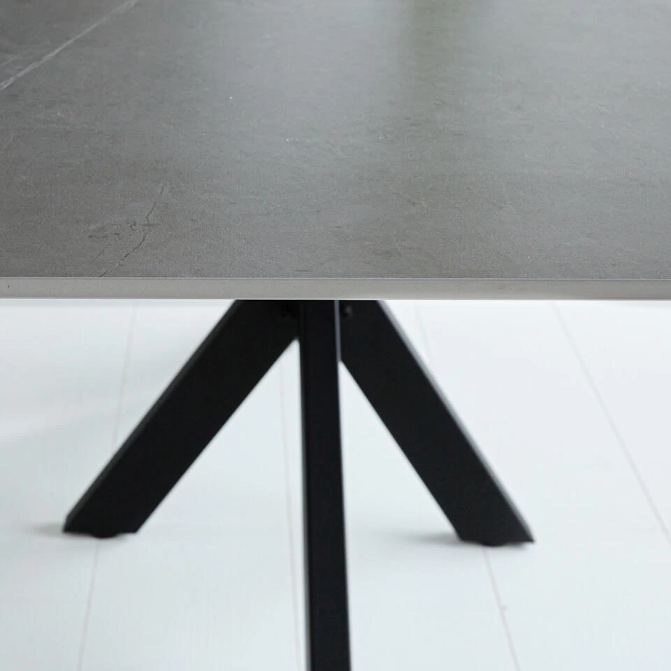 Eettafel Edin is een stoere, maar elegante eyecatcher in jouw woning. De eettafel beschikt over een slank marmerlook blad. Ook bevat de eettafel een spinpoot onderstel. Deze eettafel marmerlook is stijlvol, uniek en zeer stevig. Het blad van de eettafel is namelijk gemaakt van het stevige materiaal sintered stone en bevat een sfeervol patroon. De tafel is verkrijgbaar in verschillende formaten en kleuren. ​Deze tafel is ook geschikt voor buiten.Â