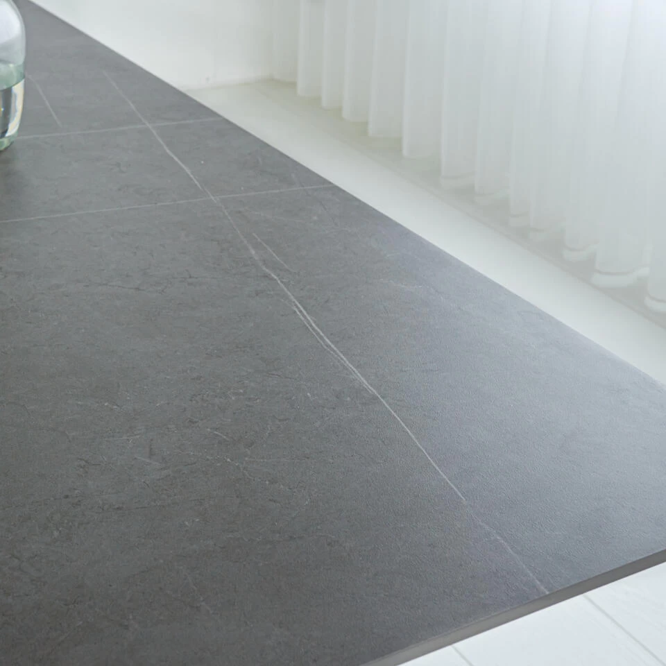 Het blad van de rechte eettafel is gemaakt van sintered stone en bevat een prachtige marmerlook. Sintered stone is een populaire steensoort wat vooral gebruikt wordt in de keukenindustrie. Het is onbreekbaar, water- en vlekproef en gemakkelijk schoon te maken. Vandaar dat sintered stone steeds populairder wordt bij het ontwerpen van meubels. Sintered stone is zeer stevig en oogt natuurlijk. Sintered stone is een natuurlijk materiaal en geeft geen schadelijke stoffen af in het milieu. Het is bestand tegen krassen en is onbreekbaar. Een design eettafel van sintered stone heeft weinig onderhoud nodig en oogt zeer stijlvol!