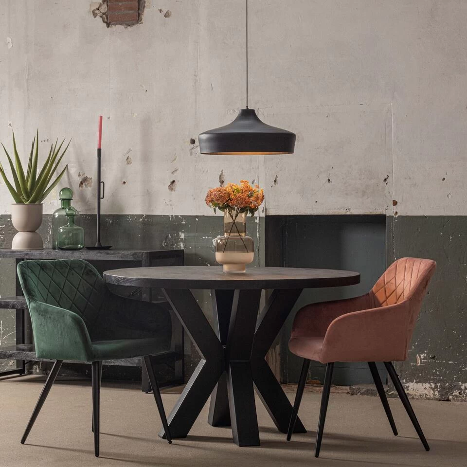 Ronde eettafels vormen de perfecte basis voor de leukste avonden, doordat gesprekken eenvoudig kunnen worden gevoerd met de hele tafel. De zwarte tafel vormt een fraai geheel en door zijn vrij compacte formaat is vast nog wel wat ruimte te vinden voor deze stoere, ronde eettafel!