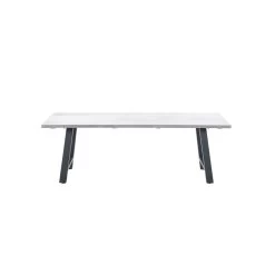 Het tafelblad is voorzien van een teakhout look, maar is gewoon van aluminium. Dit geeft de tuintafel een uniek uiterlijk en is gemakkelijk af te nemen met een doekje. Het tafelblad heeft een afmeting van 220×100 cm en heeft een H-style tafelframe. Aluminium is schoon te maken met een sopje met groene zeep en lauw water. Voor het drogen kun je het beste een pluisvrije doek gebruiken. Na ontvangst dient de tuintafel nog gemonteerd te worden. De poten dienen nog aan het blad gemonteerd te worden. Dit is op een gemakkelijke manier zelf te doen door de bijgeleverde handleiding en montage benodigdheden.