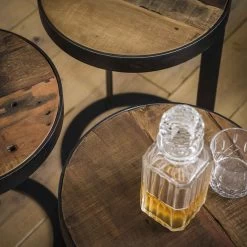 Deze ‘Raft’ bijzettafel set van 3 is uitgevoerd in metaal met een robuust hardhout blad. De combinatie van het metaal met het robuuste hardhout zorgen voor een trendy en stoere uitstraling. Dit setje is leuk als bijzettafel, maar kan natuurlijk ook gebruikt worden als salontafel. Deze set behoort tot de ‘Raft’ serie. L: 35cm, B: 35 cm, H: 45 cm / L: 35 cm, B: 35 cm, H: 50 cm / L: 35 cm, B: 35 cm, H: 55 cm