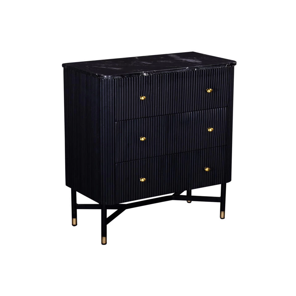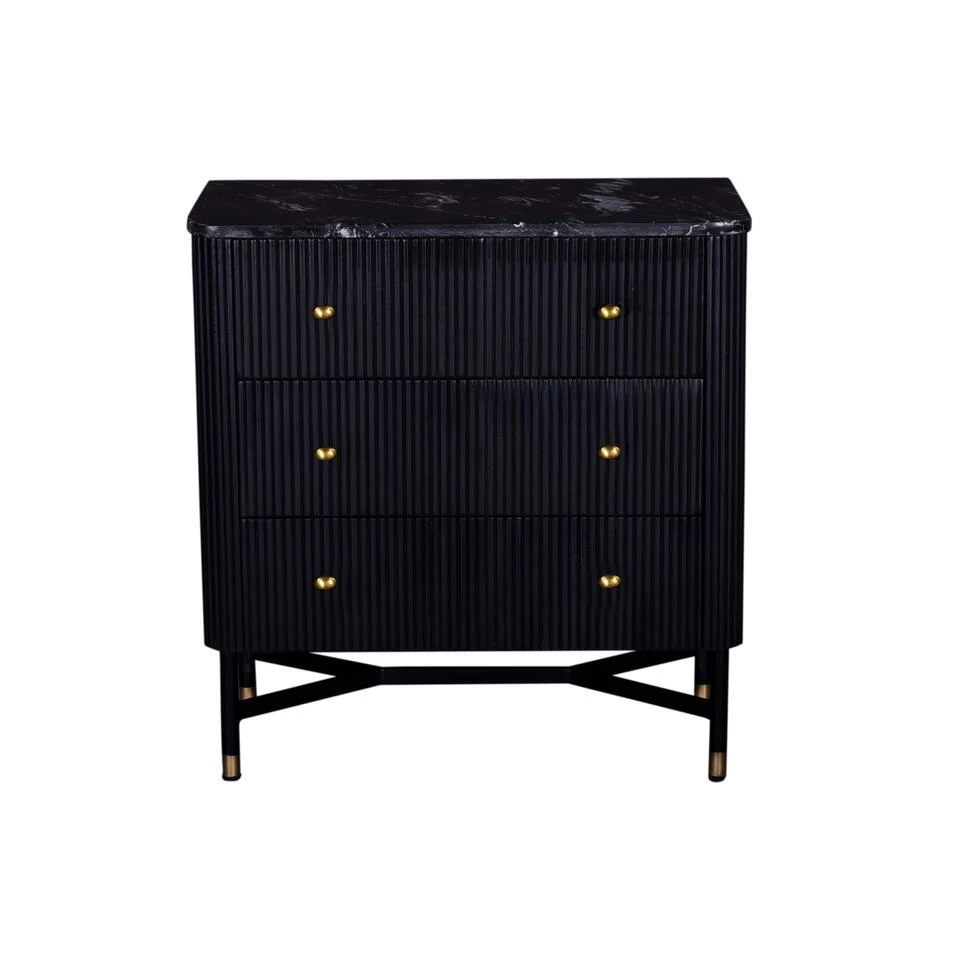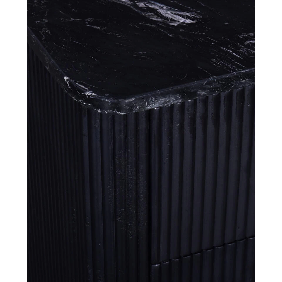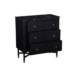 Nachtkastje Japandi groot in het zwart maakt van een praktische oplossing een stijlvol geheel. Achter de prachtige, decoratie lades verschuilt zich namelijk een royale opbergruimte waar je de spullen die je liever niet in het zich hebt eenvoudig kunt opbergen. Zo stijlvol als Japandi is, zijn er ook een aantal gouden details aanwezig waardoor er een mooi contrast ontstaat met het bruine mangohout en marmeren top. Deze eigenschappen typeren Japandi van een retro-modern design. Dankzij deze beauty heeft Japandi weinig nodig om vele interieurs te laten stralen.