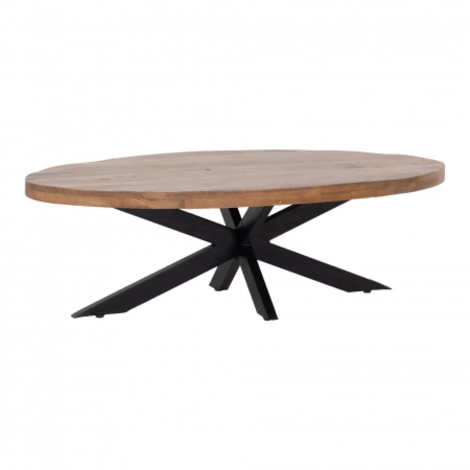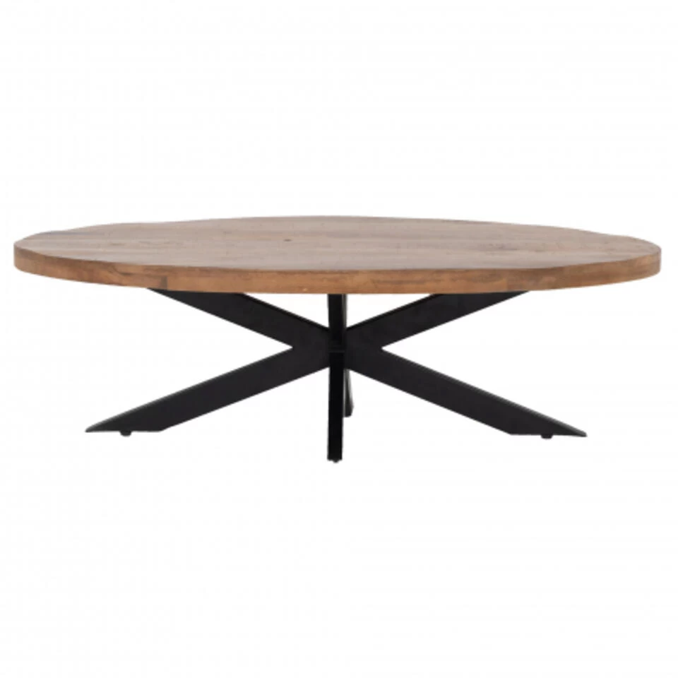 Salontafel Vervaardigd uit mangohout en een ijzeren onderstel. Deze salontafel is handgemaakt waardoor kleine oneffenheden aanwezig kunnen zijn, Dit maakt iedere tafel uniek.