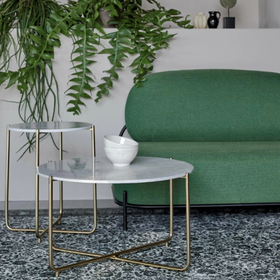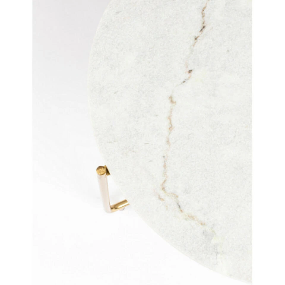 Ben je op zoek naar een stijlvolle salontafel met een trendy touch? Dan is salontafel Timpa een perfecte keuze! Deze leuke salontafel komt uit de collectie van het woonmerk Puur en heeft een afmeting van Ã70xH40 cm. Hij is voorzien van een stevig ijzeren onderstel dat is geplateerd met messing voor een hippe look. Op dit onderstel rust het ronde tafelblad, welke is uitgevoerd in groen marmer met een dikte van 15 mm. Plaats salontafel Timpa in de woonkamer en combineer hem ook met de matchende Timpa bijzettafel voor ÊÊn geheel in uw interieur. Deze tafel is tevens verkrijgbaar met een wit tafelblad. Helaas is een marmer tafel erg gevoelig voor bepaalde zuren en vlekken. Denk hierbij aan bijvoorbeeld koffie- en theevlekken. Gebruik altijd onderzetters om deze vervelende vlekken te voorkomen in uw marmeren tafel. Maximaal draaggewicht: 10 kg.