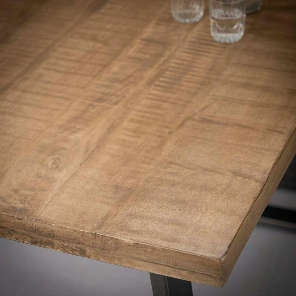 Deze moderne Holly bartafel past perfect in een strak of industrieel interieur en heeft een tafelblad met een afmeting van 135×70 cm. Het tafelblad is gemaakt van massief mangohout en is blank afgelakt. Dit blad rust op twee stevige geschuurde stalen poten, welke een mooie trapezevorm hebben. Deze bartafel is ook verkrijgbaar met een leemkleurig mangohouten tafelblad. Tevens zijn er eettafels verkrijgbaar binnen dezelfde serie!