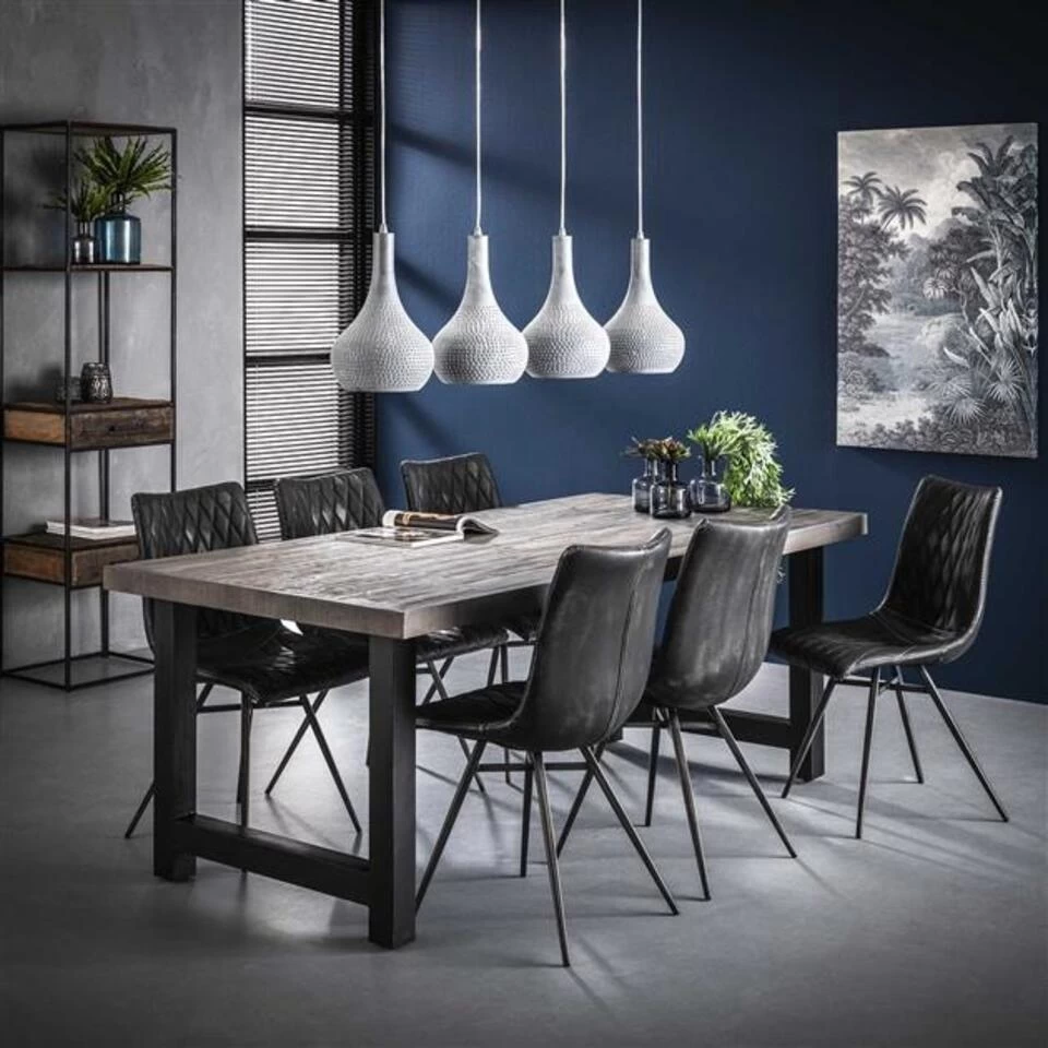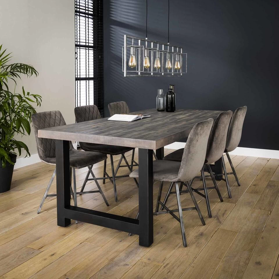Het U-frame is grijs gepoedercoat metaal. Dit maakt de tafel niet alleen stevig, het creëert ook de industriële look. De combinatie van het blad en het frame geven de eetkamertafel een stoer en trendy karakter.