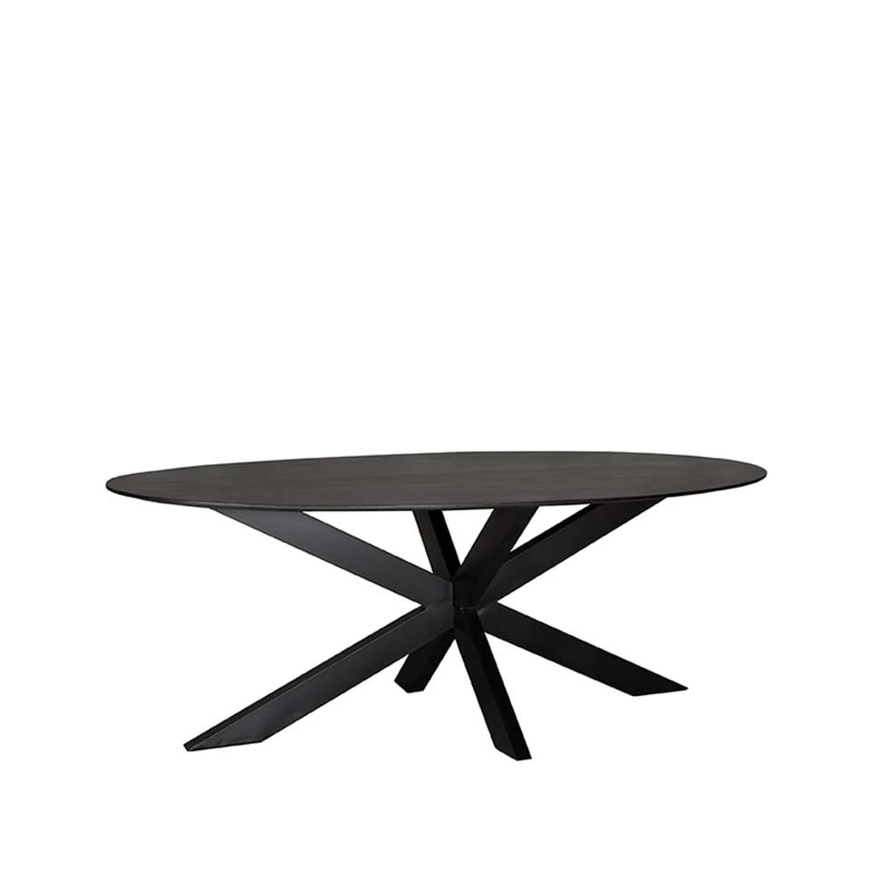 Eettafel Zion, uitgevoerd in zwart is gemaakt van duurzaam mangohout. Zion heeft een prachtig egaal en glad zwart blad in de maat 210×100 cm met een licht toelopende rand. De zwart metalen Matrix poot zorgt voor een industriële en stoere touch. Het prachtige ovale blad geeft een knus en gezellig gevoel, terwijl de lengte voor genoeg tafelruimte zorgt.