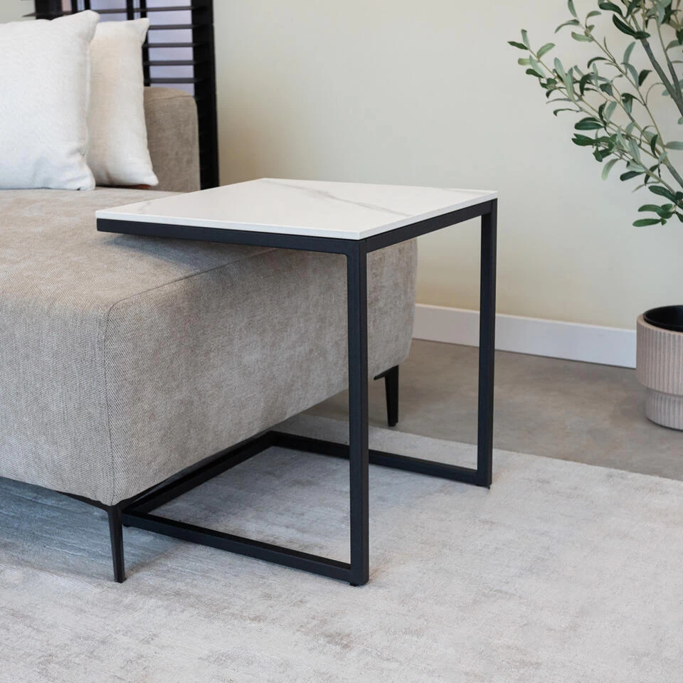 Laptoptafel Fien is een stoere eyecatcher en een zeer praktisch meubel in jouw woning. De vierkante laptoptafel is gemaakt van metaal en het blad is voorzien van een marmerlook met sfeervol design. Dit laptoptafeltje schuif je zeer gemakkelijk naast de bank zodat je niet ver hoeft te reiken voor jouw afstandsbediening, tijdschrift of drankje. De laptoptafel bevat een uniek blad gemaakt van het stevige materiaal sintered stone met een sfeervol patroon. Het tafeltje is zeer stevig en past in elke interieurstijl. Fan van de Fien tafels? Ontdek nu onze gehele collectie en combineer!Â