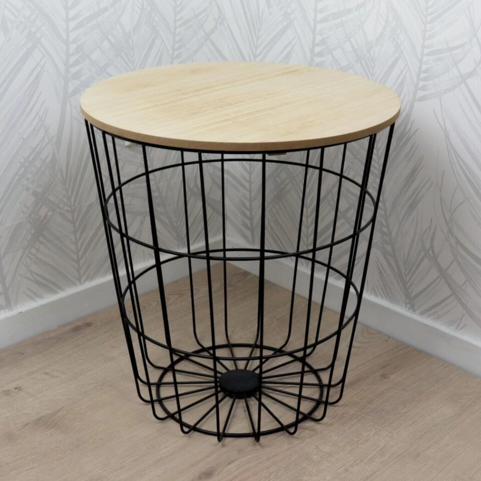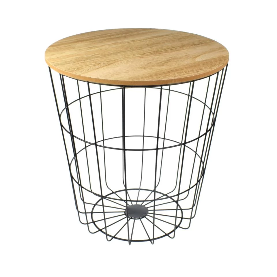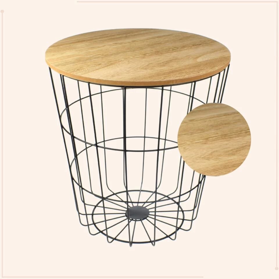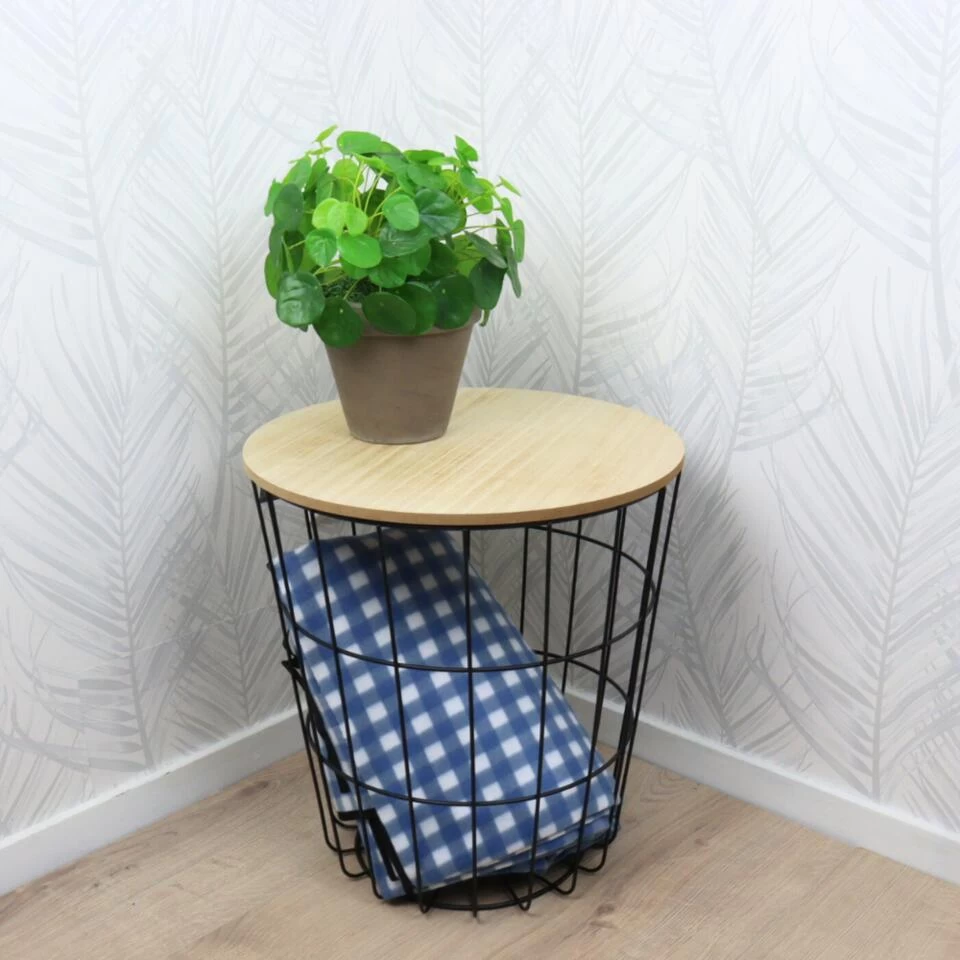 Doordat deze metalen mand van MISOU een houten bovenzijde heeft is het tegelijkertijd een handige bijzettafel. De bovenzijde van de mand schuift niet door de goede pasvorm, maar kan wel makkelijk afgehaald worden. Zo kun je in de mand dekens of andere accessoires bewaren.
