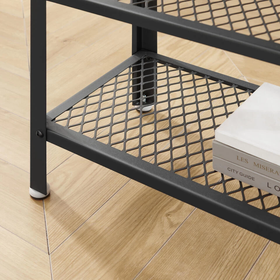 Slank, eenvoudig en een prachtige sidetable is een toevoeging aan uw huisstijl. Deze wandtafel of haltafel van 60 x 30 x 60 cm past sierlijk in nagenoeg elke ruimte in uw huis dat u met een vleugje industriële charme en zwarte ijzeren accenten wilt opfleuren.