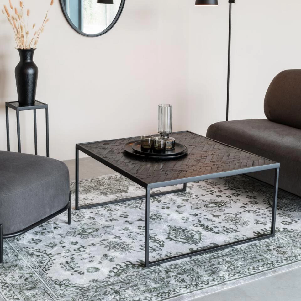 De Mäki serie van het woonmerk Puur is uniek en helemaal van deze tijd. De gehele serie bestaat uit een combinatie van hout en metaal. Deze combinatie zorgt voor een strakke maar speelse look. De Mäki salontafel is voorzien van een mat zwart gerecycled teakhouten blad met een NC gelakte afwerking. Het frame is van stevig zwart gepoedercoat metaal. Plaats deze salontafel in jouw woonkamer bij de bank. Combineer deze salontafel met de andere items van de Mäki serie voor eenheid binnen het interieur. De salontafel heeft een afmeting van 80x80x40cm. Het maximale draaggewicht is 40 kg. Uit dezelfde serie Mäki komt ook een rechthoekige salontafel en een set van 3 tafels. Voor iedere ruimte een passend alternatief.