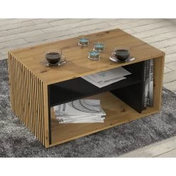 Auris is een prachtige collectie voor de woonkamer, die de kenmerken van een moderne, loft en industriële stijl combineert. De meubelen kenmerken zich door een buitengewone elegantie, wat te danken is aan het gebruik van natuurlijke houtkleuren en matzwart. Het onderscheidende kenmerk is de gefreesde lamellen aan de voorzijde, gemaakt van hoogwaardige MDF-plaat.