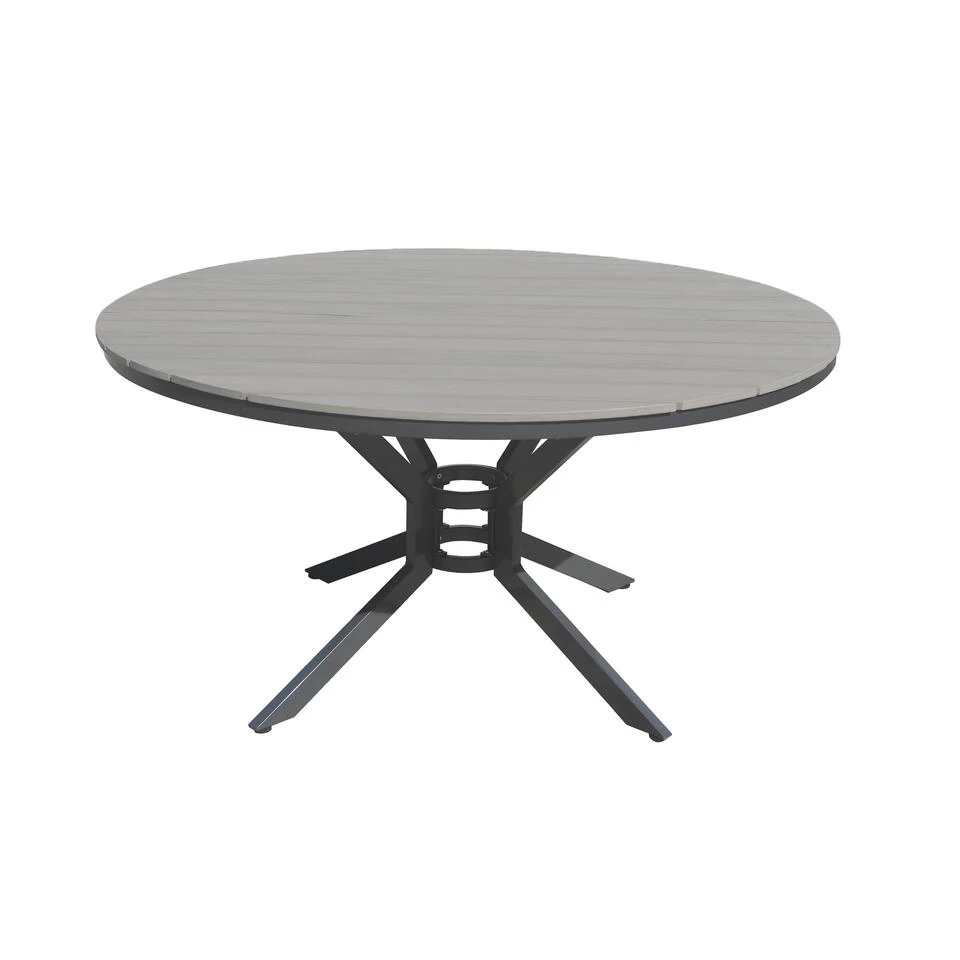 Gemaakt van een aluminium frame en voorzien van een polywood tafelblad. De planken van het tafelblad zijn voorzien van een voelbare hout stuctuur.