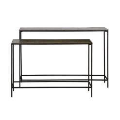 De afmetingen van deze sidetable zijn 119 x 25 x 80 cm en hij is uitgevoerd in de kleur bruin. Door het gebruik van metaal​ geeft deze sidetable je interieur een rijke en klassieke look. De rechte vormen van deze sidetable zorgen voor een strakke uitstraling. ​Deze side table geeft je ruimte echt een chique uitstraling. Leuk voor in de zithoek en nog super handig ook!​ Dit product wordt geleverd als set van 2. Deze sidetable wordt voorgemonteerd geleverd. Dit product heeft zijn charme te danken aan de onafgewerkte details.