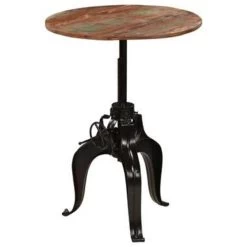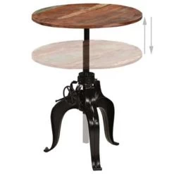De bartafel is gemaakt van massief gerecycled hout dat afkomstig is van balken, vloeren en steunbalken van oude gebouwen die zijn gesloopt en de meubelen kunnen dus bestaan uit verschillende houtsoorten, zoals grenen, teak, beuken, eiken, ceder en mangohout. Dit betekent dat het teruggewonnen hout de kenmerken van deze verschillende houtsoorten behoudt. Gerecycled hout is al verouderd, verweerd en gedroogd, dus het krimpt en buigt niet. De tafelhoogte is naar wens verstelbaar. Het stalen frame draagt bij aan de stabiliteit en industriële stijl van de tafel. Elke stap in het constructieproces wordt met de grootste zorg uitgevoerd, of het nu hercombineren, polijsten, schilderen of lakken is. Montage is eenvoudig.