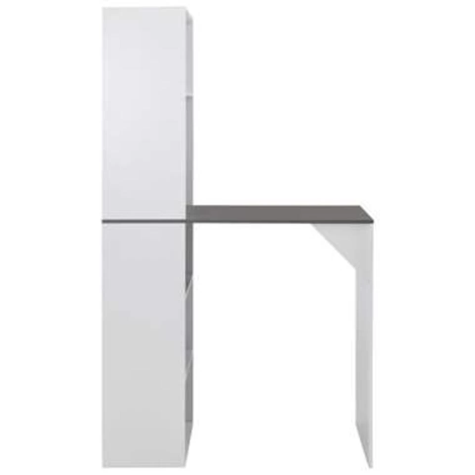 Dankzij de grote opbergkast is er voldoende ruimte voor het plaatsen van flessen wijn en andere spullen. Dankzij het stevige bewerkte hout is de tafel duurzaam, stabiel en gemakkelijk te reinigen. Het L-vormige frame maakt de tafel zeer stabiel. Je zult zeker meer genieten als je wijn of koffie drinkt aan deze prachtige bartafel.