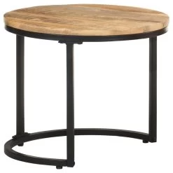 Deze tafelset is gemaakt van massief mangohout, een tropisch hardhout dat sterk en slijtagebestendig is. Het voortreffelijke vakmanschap en de prachtige houtnerven maken elk stuk net iets anders dan de rest. Daarnaast zorgt het massieve tafelblad voor een stabiel en veilig oppervlak waarop u uw verschillende benodigdheden kunt plaatsen. Het massieve tafelblad biedt een stabiel en stevig oppervlak waarop je verschillende spullen kunt plaatsen. De gepoedercoat ijzeren basis draagt bij aan de stevigheid en stabiliteit. Je kan de tafeltjes samen of apart gebruiken en in elkaar opbergen om ruimte te besparen.