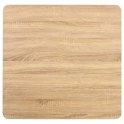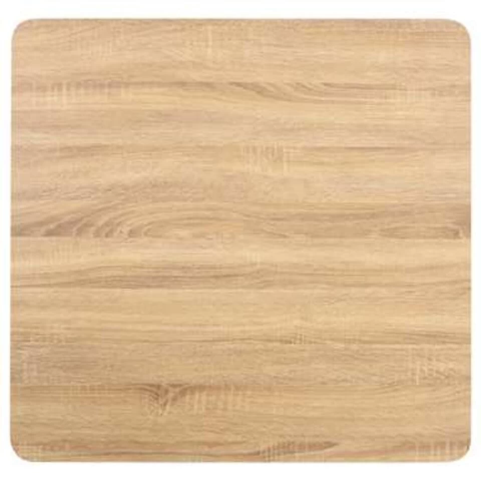 Het tafelblad is gemaakt van MDF met houtnerfpatroon en wordt ondersteund door een stalen poot en basis. Hij is gemakkelijk schoon te maken met een vochtige doek. Gebruik de tafel als aanvulling op je interieur, restaurant, koffiebar of lunchroom.