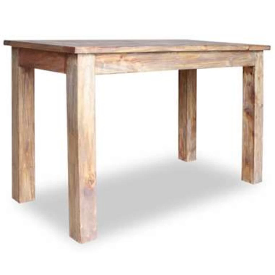 Deze tafel is gemaakt van massief hergebruikt hout dat de kenmerken heeft van verschillende houtsoorten, zoals mahoniehout, teakhout, mangohout, acaciahout, enz. Elke eettafel is uniek en net iets anders dan de rest. Tekenen van slijtage dragen bij aan de spectaculaire vintage stijl en geven elk meubel een unieke uitstraling. Omdat de eetkamertafel gemaakt is van gerecycled hout, kan hij oneffenheden vertonen die de authentieke waarde en rijke geschiedenis weergeven. Het hout komt van natuurlijk omgevallen bomen, oude boten, afgebroken houten huizen, enz.
