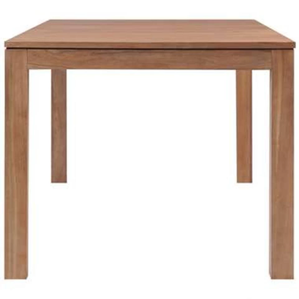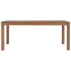 Deze tafel is handgemaakt van massief teakhout, dat zeer stevig en duurzaam is en natuurlijke eigenschappen heeft. Elke stap van het proces wordt met de grootste zorg uitgevoerd, of het nu polijsten, schilderen of lakken is. Het vakmanschap en de mooie houtnerven maken elk meubel uniek en net iets anders dan de rest. Hij heeft een stevig tafelblad en de eenvoudige, rustieke stijl maakt je dagelijks eten speciaal. Dit product is eenvoudig te monteren.