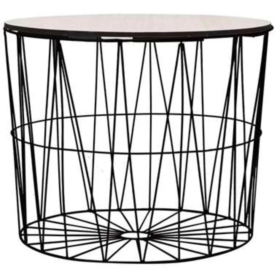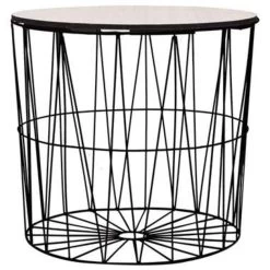 Het massief houten tafelblad biedt een stabiel oppervlak waarop je drankjes, vazen en andere decoratieve spullen kunt plaatsen. Door de bladen te verwijderen, verander je de bijzettafels in opbergmanden. Bovendien kan de kleinere tafel in de grotere worden geplaatst om ruimte te besparen. Het sterke, gepoedercoat metalen frame draagt bij aan de robuuste constructie en de industriële uitstraling.