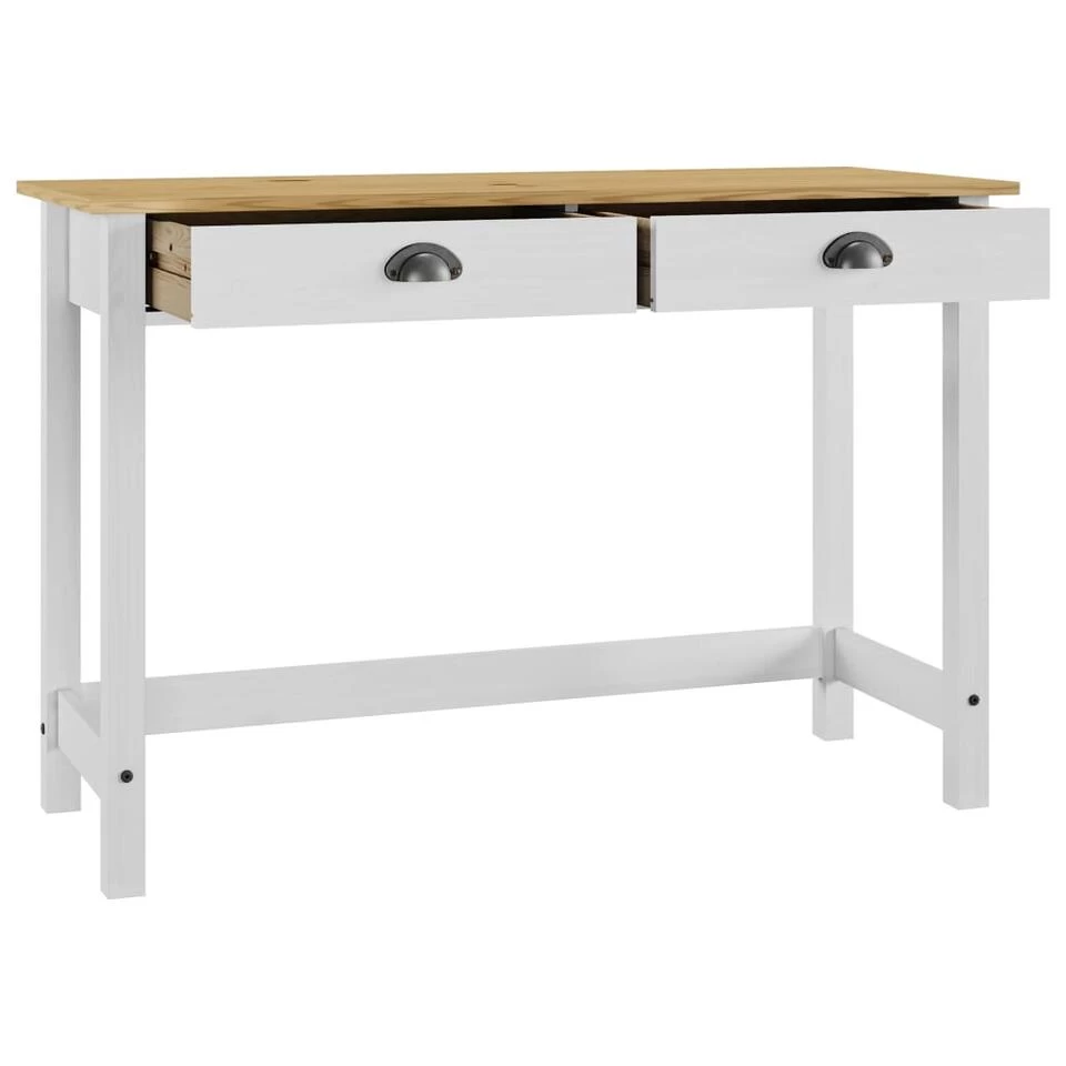 De houten tafel combineert vakmanschap met functionaliteit. Onze consoletafel heeft een compact ontwerp en neemt weinig ruimte in. De 2 soepele lades bieden extra ruimte om persoonlijke spulletjes op te bergen. Deze wandtafel is gemaakt van massief grenenhout en is zeer duurzaam.