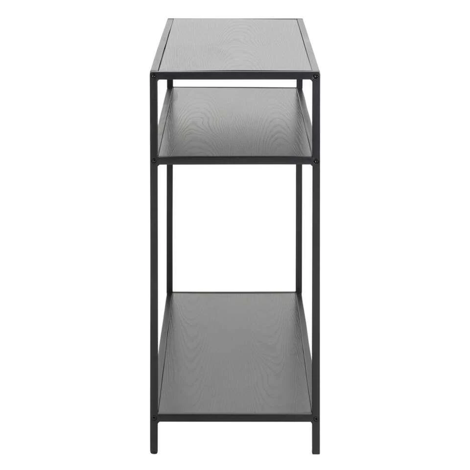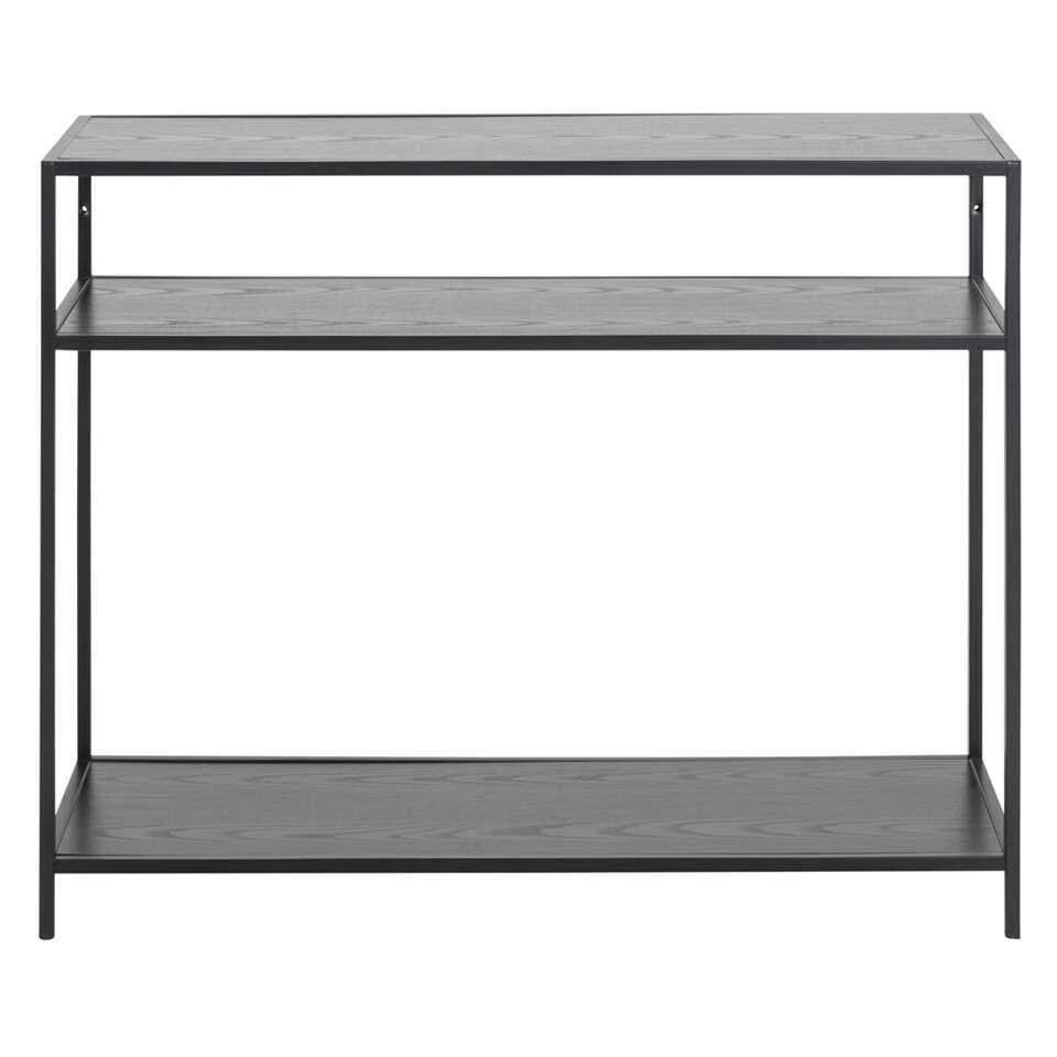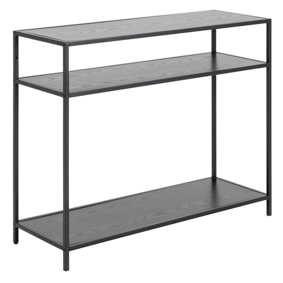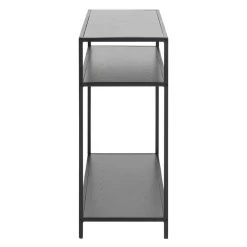 Wandtafel Jaxx is strak vormgegeven met een industriële look. De planken zijn gemaakt van zwart eikenhout en het frame is gemaakt van metaal met een zwarte poedercoating. Deze sidetable ruim en biedt veel ruimte voor allerhande spullen. Zet bovenop bijvoorbeeld leuke woonaccessoires. Onderin kun je manden zetten met losse spullen. Zet deze eyecatcher in je woonkamer, werkkamer of in de slaapkamer!