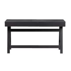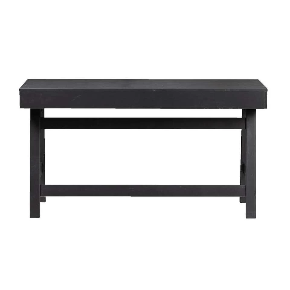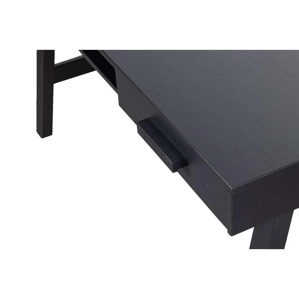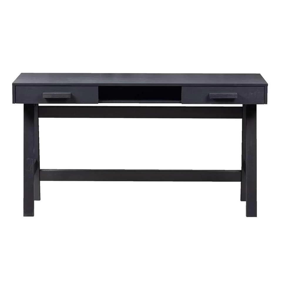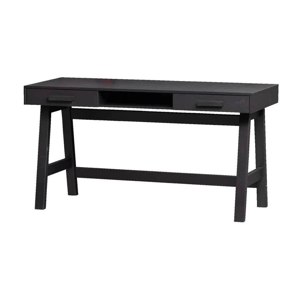 Woood bureau Benson is gemaakt van mat zwart gelakt grenenhout. Dit bureau heeft een stoere uitstraling en een industriële look. Het bureau heeft een afmeting van 75x140x62 cm. Met een open vak en 2 lades biedt het bureau voldoende ruimte om al je accessoires op te bergen. Door zijn stoere uitstraling en sluit hij helemaal aan bij de laatste trends!