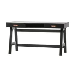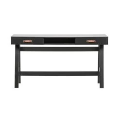 Het Dian bureau is eigentijds, basic en een tikkeltje stoer. Dian is een eigen ontwerp en komt uit de collectie van het merk WOOOD. Het bureau is gemaakt van grenen dat is afgewerkt in een stoere zwarte kleur. Het bureau is voorzien van twee lades met een leren greep en een opberg vak. Dit zorgt voor een opgeruimd werkblad. Door de moderne, stoere uitstraling past dit bureau in vele slaapkamers thuis!