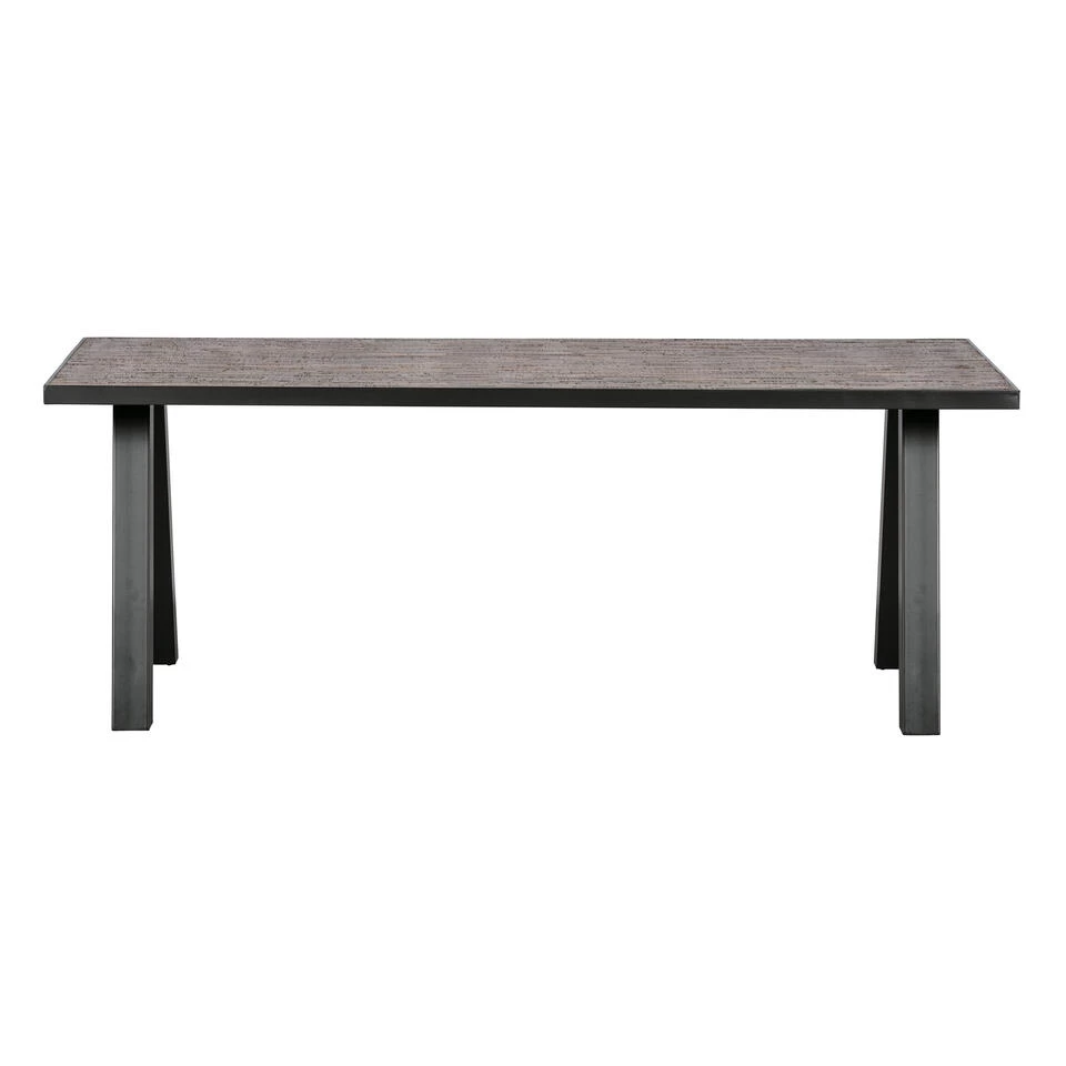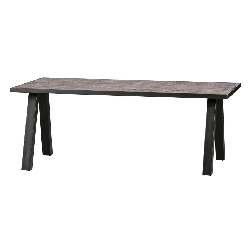 – Tafelblad van teakhout en metalen opsluitband